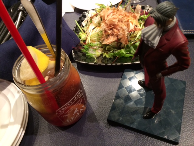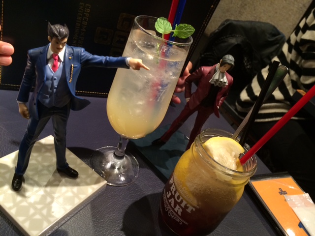 この日外人のお客さんが二組いましたが逆転裁判好きらしきメガネの兄ちゃんがみっちゃんのティーセットを頼んでフィギュアと一緒に撮影してたり例のイベントでテンション上がっちゃったのか先に「異議あり!」言っちゃったりと心底楽しんでいる様子がとても微笑ましかったです。