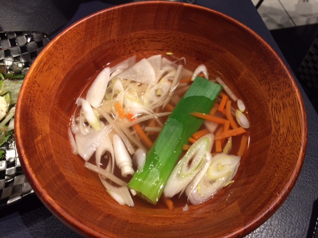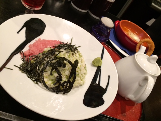 奥オドロキ君のミネストローネ、手前は大神のお茶漬け。