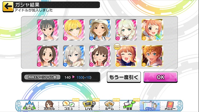 × [PR]上記の広告は3ヶ月以上新規記事投稿のないブログに表示されています。新しい記事を書く事で広告が消えます。 コミュ石かき集めて割引石全部買って……通算150連目にしてやっと今回の限定SSR一人目のきらりちゃんが来てくれました。 きらりちゃんSSRコンプ継続完了だにぃ~♪ ……これ、かつて苦戦した限定楓さんとほぼ同じ数字です。 ここまででいわゆる納税含めて被りSSRが3枚でました。ウチ一枚がその日誕生日だった涼さん。 なんだかなぁ……(遠い目) ちなみに300連すると天井到達で強制的にスカウト画面行きになり、完了するまでガシャることは出来なくなるそうな。 丁度折り返し地点なんだよねぇ…幸子欲しいけどここまでは無償石や宝くじで当たったチケット等があったから何とかなったけどこっから先はほぼリアルマネーになるので最悪天井到達になるとしてざっと計算すると………約45000円。 天井無しだった昔に比べれば遙かにマシなんだろうけどPS4とリメイクバイオ2買えるわ!旅行できるわ!!焼肉食い放題!! ………あと10連分は残っているので納税しつつ考えます。 ハロウィンがテーマの衣装だったので魔女系の曲でまずは踊らせてみた所、なんか見覚えのあるちっこいのがいるぞ!? 最初は3Dリッチ効果かと思ったんですがきらりちゃんの周りだけだったのでMV映えすると言われてる関ちゃんの曲で。 ルームアイテムにもなっているハロウィン仕様のオバケが2体がふよふよしつつくっついております。 衣装も可愛いがこっちもかわいいのう~ ところで引いてから気付いたのですがセンター効果と発動時間が既にいる限定はぁとさんと全く同じなのか;;; 幸子の方はコウモリがふよふよしてるらしい。 衣装も凄い凝っててウサミンが羨ましがりそうなデザインです。 うわおおおおおお気になるうううううう 相変わらずごちゃってる我がルーム。 人様のルーム見に行ったときちょい前のイベントSRである楓さんのこの台詞(右側の吹き出し)見て盛大に吹きました。 自分ここ最近のイベントSRは育成が追っつかないためプレボに各種1枚だけ残しているんですが速攻で引っ張り出してお気に入り行き。 川島さんを尊敬する台詞もあるんですが今メイド版が一緒にいるのでそれが出る度に笑ってしまいます。 デレステSSR所有率 久々に調べてみました。 43% [89/205]です。 (内訳:恒常52% [58/111], 月末限定26% [19/74]), フェス限定60% [12/20]) 50パー行ってないのね……相当被ってるのはなんでやねーん。 PR